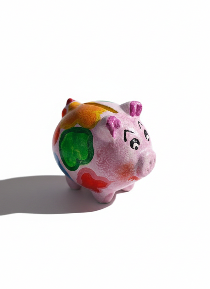 Dale un hogar a tus ahorros con nuestra Alcancía de Marranito Tradicional. Fabricada en cerámica de alta calidad y decorada con un patrón alegre de formas multicolores (verde, naranja, rojo), esta pieza destaca por su expresión amigable y su acabado texturizado que le da un carácter único.